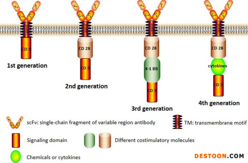 圖2:四代嵌合抗原受體(CAR)的結構[2]