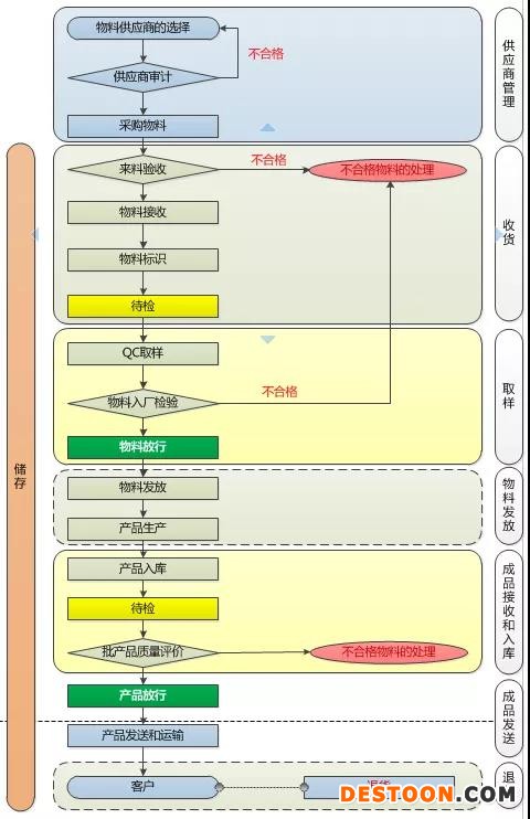 企業(yè)應(yīng)建立書面的管理程序規(guī)定:區(qū)域狀態(tài)標(biāo)識(shí)牌、貨位狀態(tài)標(biāo)識(shí)牌的使用、存放和 管理;貨位狀態(tài)標(biāo)簽和物料狀態(tài)標(biāo)簽的接收、發(fā)放、使用和銷毀管理并應(yīng)有記錄。質(zhì)量管理部門負(fù)責(zé)建立和實(shí)施物料和產(chǎn)品的合格標(biāo)簽、不合格標(biāo)簽接收、發(fā)放、使 用、銷毀管理流程,并負(fù)責(zé)決定以下質(zhì)量狀態(tài)的轉(zhuǎn)換。