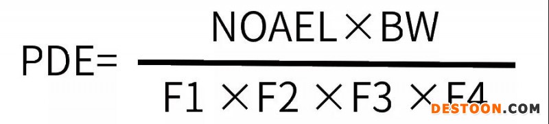 如果可以獲得有限毒性數(shù)據(jù)和日治療劑量(TDD)值,可以采用本計(jì)算方式,就原料藥而言,該公式適用于原料藥生產(chǎn)工藝A更換到原料藥生產(chǎn)工藝B的情況。計(jì)算公式如下: