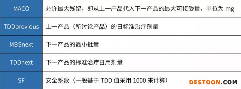 MACO代表產(chǎn)品A能進(jìn)入到產(chǎn)品B中的最大可接受量(mg);