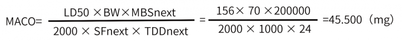 其次,根據(jù)NOEL值計(jì)算MACO值: