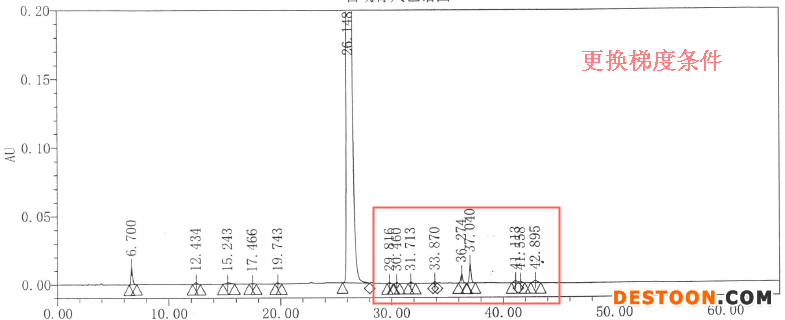 • 延長梯度洗脫高比例洗脫劑洗脫時間,防止小極性雜質(zhì)漏檢。