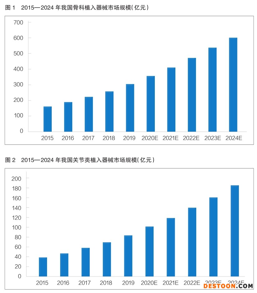 隨著全球經(jīng)濟發(fā)展以及人口老齡化問題不斷加劇,醫(yī)療健康市場的潛力被進一步激發(fā)。醫(yī)療器械市場的發(fā)展與醫(yī)療健康行業(yè)緊密相關(guān)。從細分領(lǐng)域來看,骨科植入器械市場規(guī)模約占全球醫(yī)療器械市場總規(guī)模的9%,位列第四。基于我國人口基數(shù)龐大,社會老齡化進程加速,骨科醫(yī)療需求不斷上漲,骨科植入器械行業(yè)近年來得到迅速發(fā)展,且仍有廣闊的市場前景和巨大的成長空間。