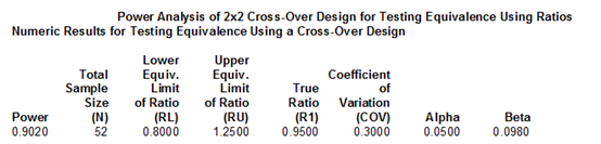 總結(jié):當(dāng)個(gè)體內(nèi)變異系數(shù)為 15% 時(shí),軟件計(jì)算所得的樣本需求量為 15 例,而當(dāng)體內(nèi)變異系數(shù)為 30% 時(shí),軟件計(jì)算所得的樣本需求量為 52 例,由此可知:如果一個(gè)品種個(gè)體內(nèi)變異越高,滿足生物等效性標(biāo)準(zhǔn)所需的受試者樣本量就越大。