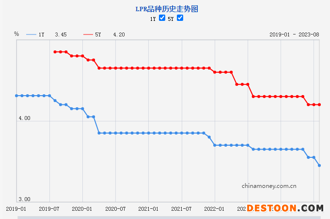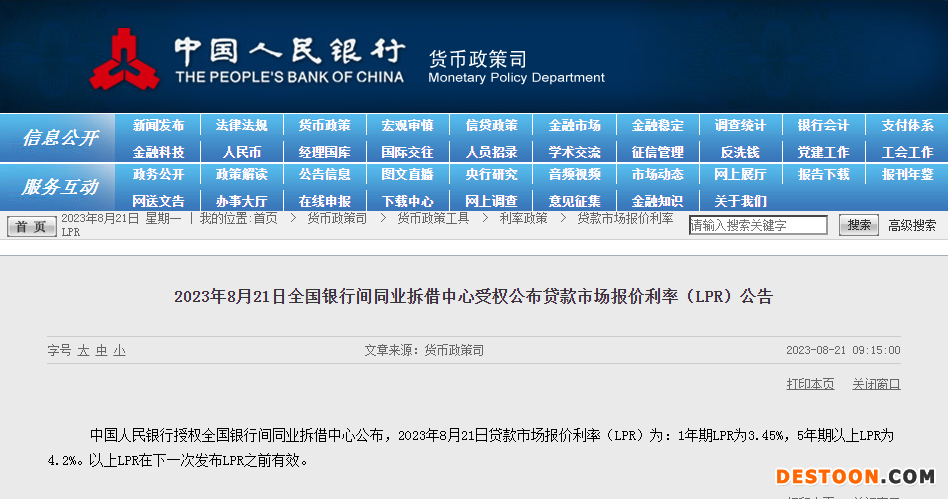 當日,中國人民銀行授權全國銀行間同業(yè)拆借中心公布,1年期LPR為3.45%,5年期以上LPR為4.2%。1年期LPR較上一期下降10個基點,5年期以上LPR保持不變。