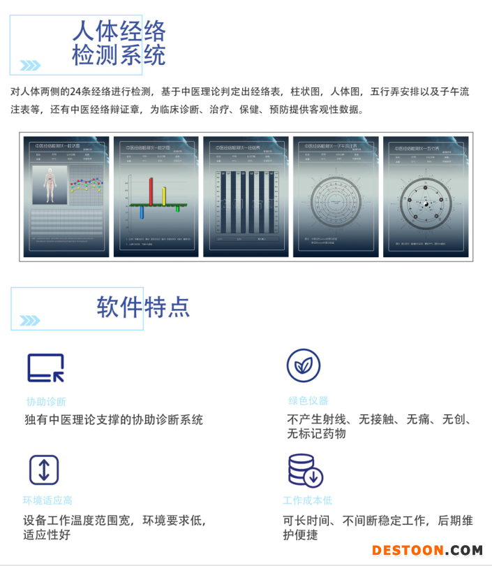中瑞博康中醫(yī)經(jīng)絡(luò)檢測儀已連續(xù)入選《中醫(yī)診療設(shè)備評估選型推薦品目》、《中醫(yī)藥預(yù)防保健及康復(fù)服務(wù)能力建設(shè)項目》、《中醫(yī)藥防治重大疑難疾病臨床服務(wù)能力建設(shè)項目》、《中醫(yī)“治未病”能力建設(shè)項目》等國家中醫(yī)藥管理局科技專項扶持項目重點推薦設(shè)備,是國內(nèi)中醫(yī)診療設(shè)備中最具專業(yè)性、權(quán)威性、先導(dǎo)性的中醫(yī)治未病專用診斷設(shè)備。中醫(yī)經(jīng)絡(luò)檢測儀多應(yīng)用于各類醫(yī)院的體檢中心和治未病中心、中醫(yī)院各臨床科室、綜合醫(yī)院和中西醫(yī)結(jié)合醫(yī)院的中醫(yī)類科室等,主要應(yīng)用領(lǐng)域如下:中醫(yī)特色健康管理服務(wù)模式創(chuàng)新、中醫(yī)“治未病”服務(wù)能力建設(shè)、互聯(lián)網(wǎng)+中醫(yī)醫(yī)療:開展中醫(yī)特色遠(yuǎn)程醫(yī)療服務(wù)、中醫(yī)信息化建設(shè)項目等。